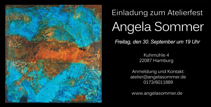 Atelierfest am 30. September 2016 Veröffentlicht am 1. September 2016 von Blau Anmeldung über 040 – 88 17 36 40 oder per email an atelier at angelasommer.de